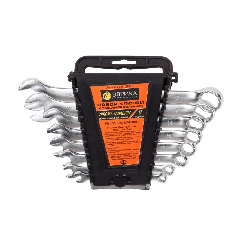 Набор ключей эврика комбинированных 6-19мм сатинированных холдер 8 предметов информация: