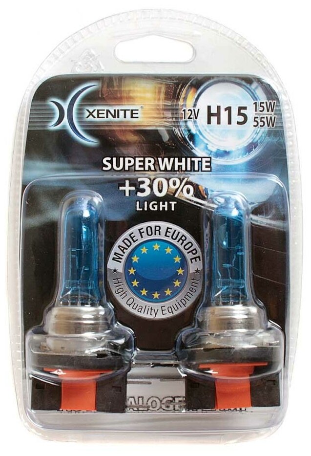 XENITE 1007068 Галогенные лампы (12V) H15 (SUPER WHITE+30) (блистер 2 шт.)