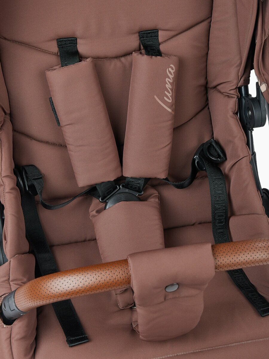 Коляска прогулочная детская Happy Baby LUNA, съемный бампер, капюшон, дождевик, москитная сетка, коричневая информация: