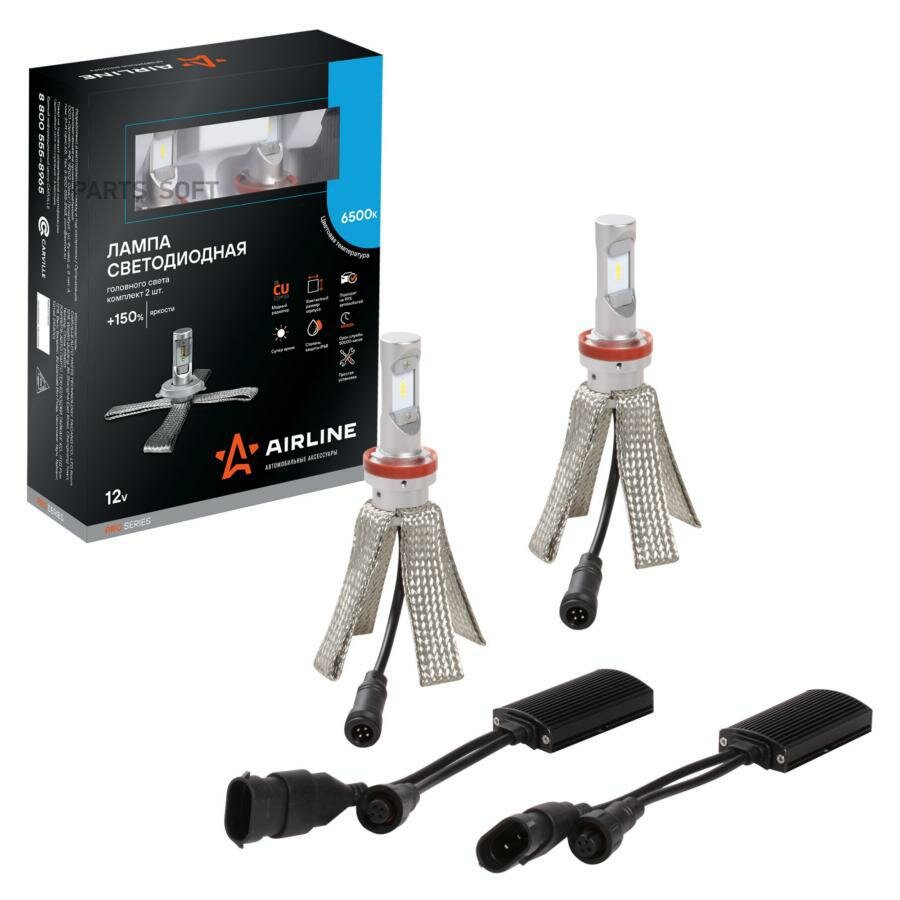 Лампа светодиодная H11 18 Вт 12В 5000Lm LED 6500К белая Airline Premium 2шт AIRLINE ALEDH1105 | цена за 1 шт