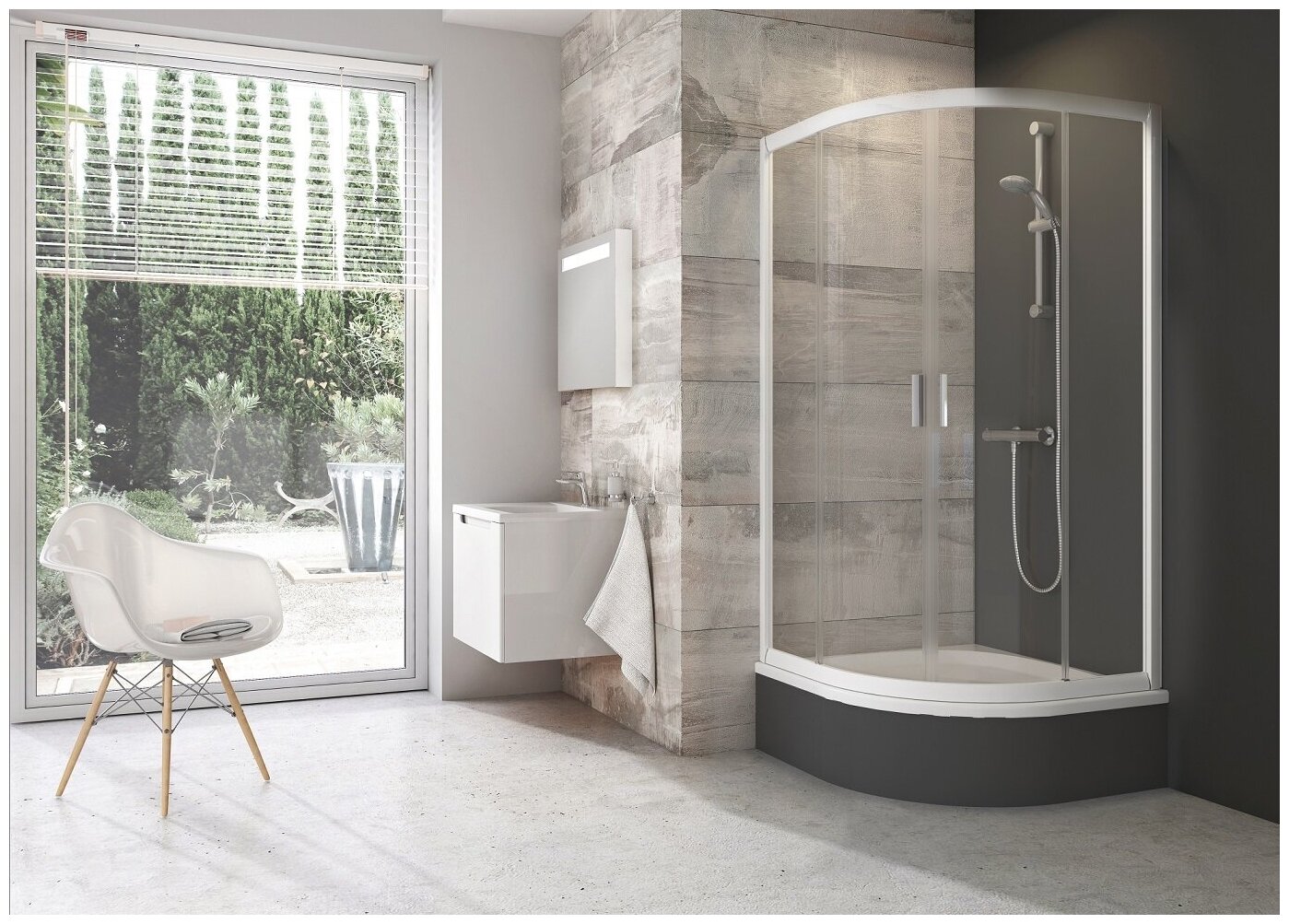 Душевой уголок полукруглый Ravak Blix BLCP4-90 Sabina белый+транспарент
