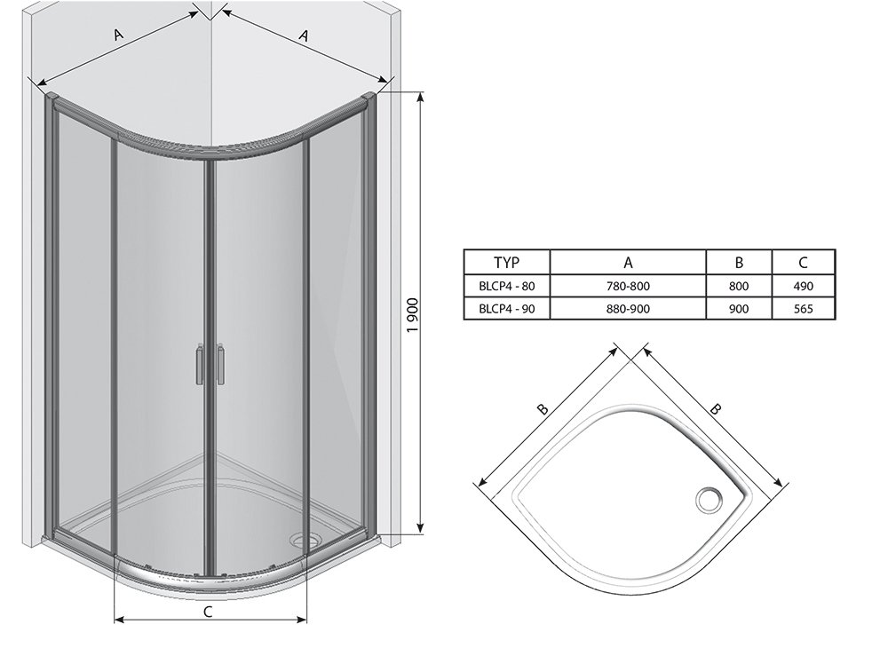 Душевой уголок полукруглый Ravak Blix BLCP4-90 Sabina блестящий+транспарент