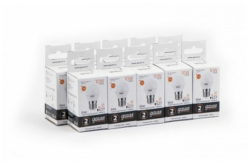 10шт/уп. Лампа LED Шар 10Вт 230B P45 E27 710Лм 3000К Свет Теплый белый арт. 53210 Gauss, уп. 10шт 2 447 ₽