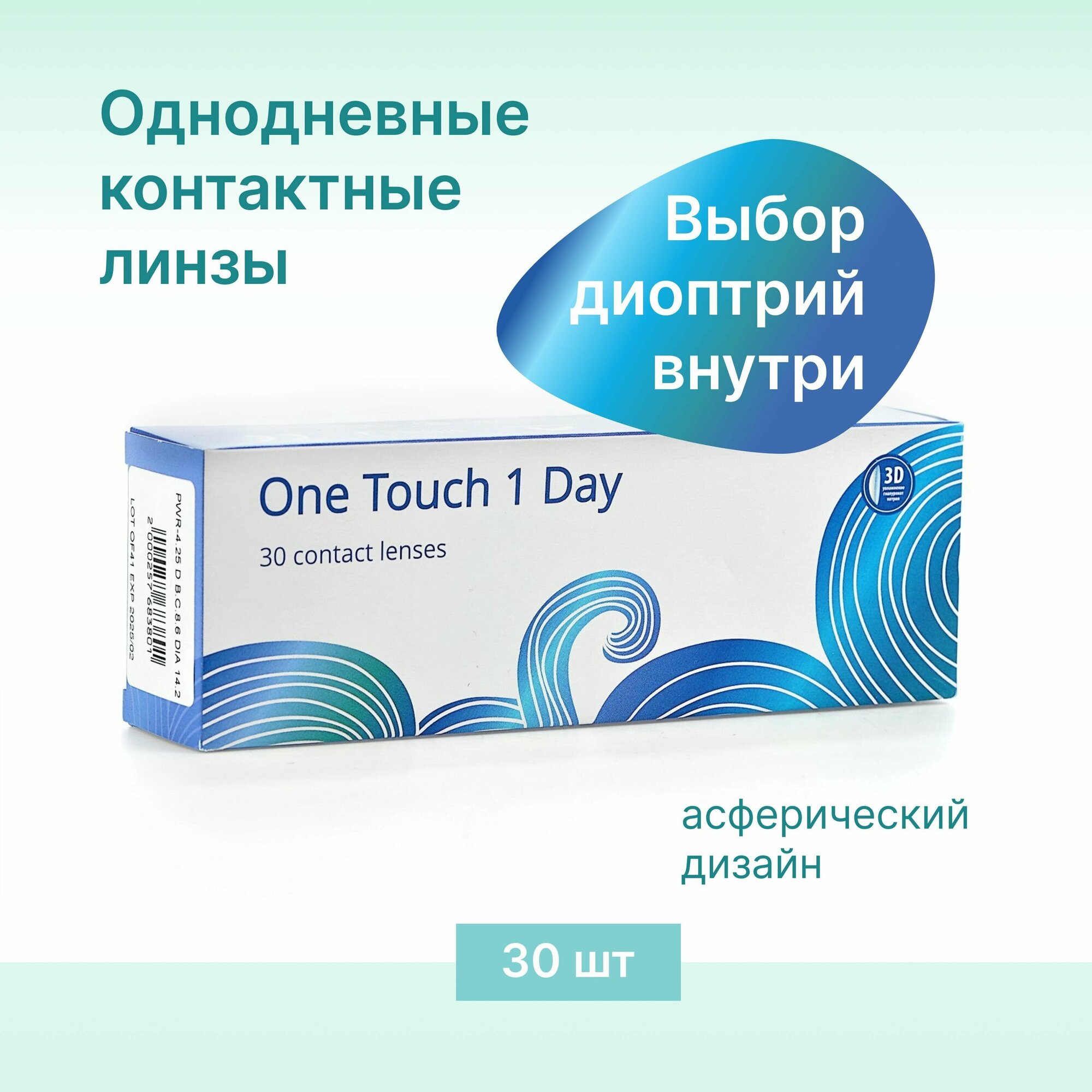 One Touch 1 Day 30 линз В упаковке 30 штук Оптическая сила -7 Радиус кривизны 8.6