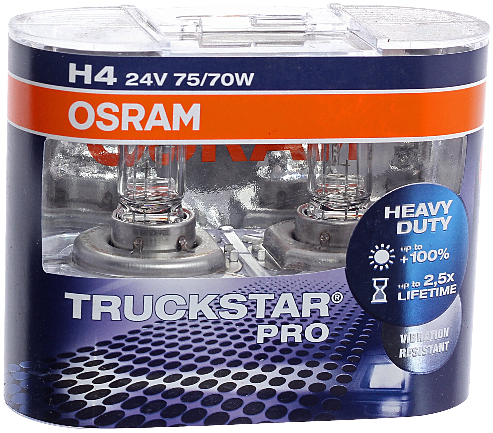 OSRAM 64196TSPHCB Комплект ламп H4 24V 75/70W P43t TRUCKSTAR PRO +100% больше света 2шт.(1к-т)