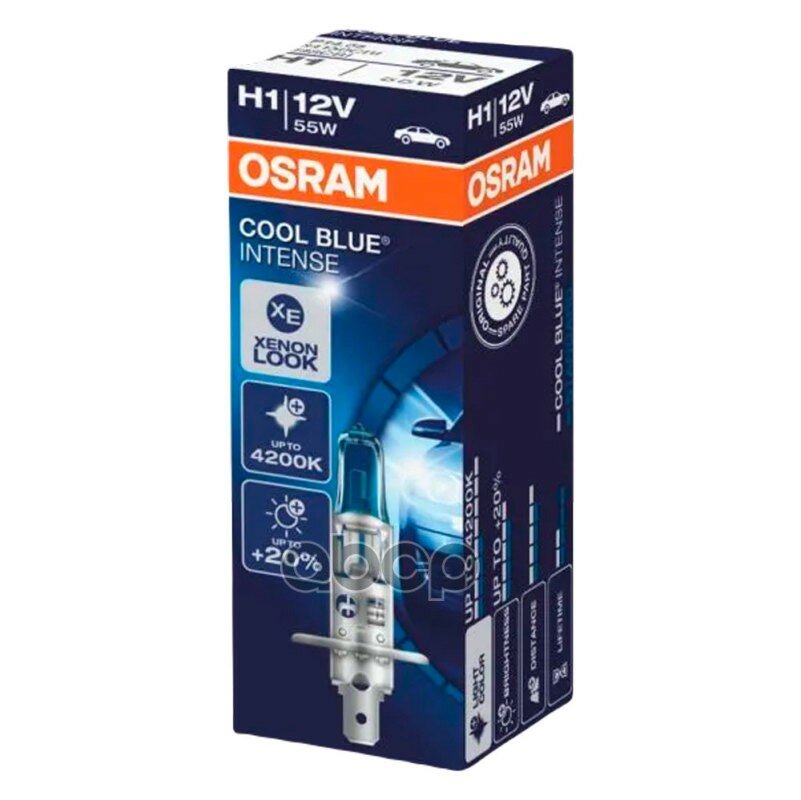 Лампа автомобильная галогенная Osram COOL BLUE INTENSE (+20% света), 64150CBI-01B, H1, 12V, 55W, P14.5s, 4200K, 1550lm (блистер) (1 шт.)