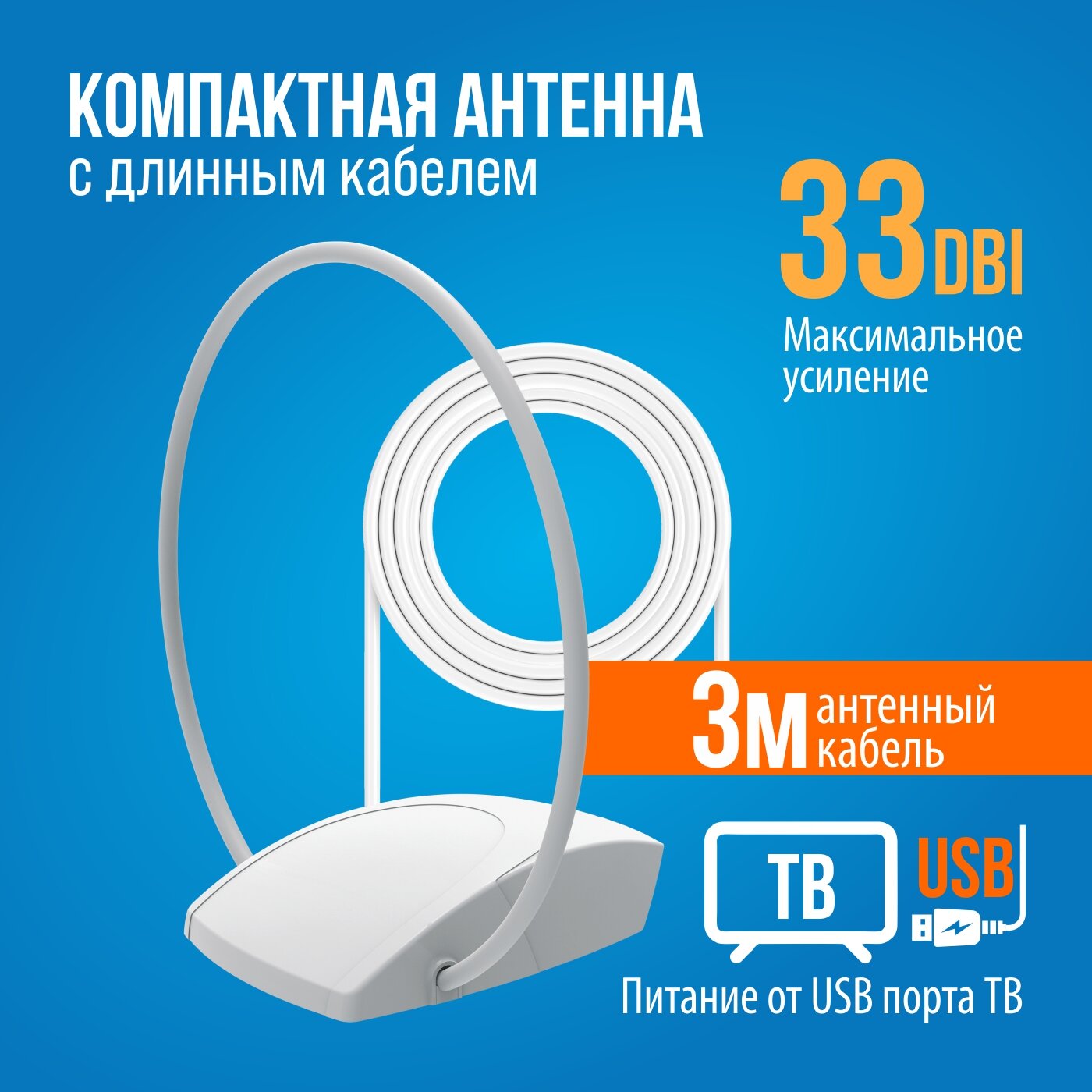 Комнатная активная ТВ антенна РЭМО Иргиз BAS-5152 USB, кабель 3 м., белая информация: