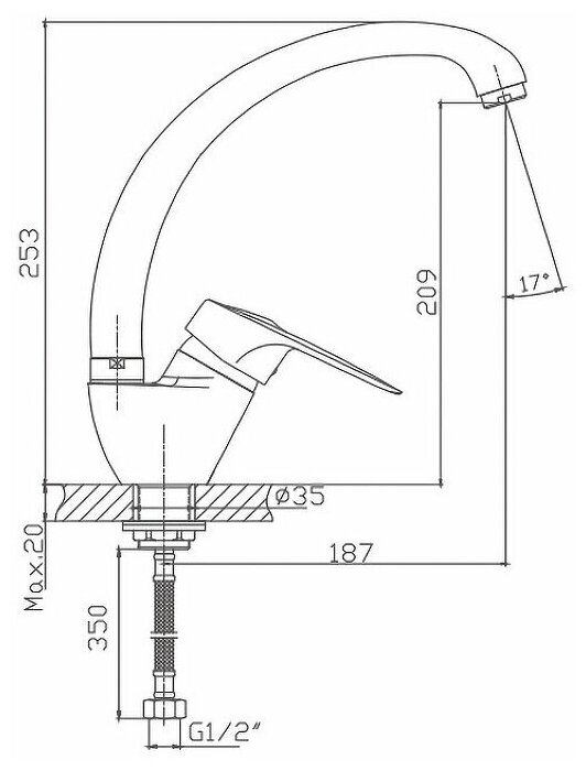 Смеситель для кухни 40к CN4104-2 CRON высокий пов. излив, п/гайку, хром информация: