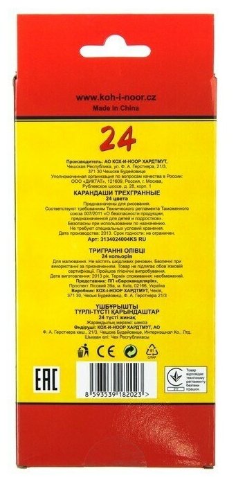 Отзывы на Карандаши 24 цвета, Koh-I-Noor 3134 TRIOCOLOR, картонная упаковка, европодвес