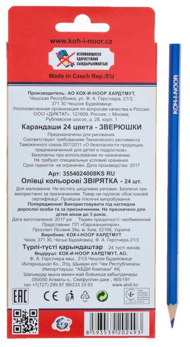 Карандаши 24 цвета Koh-I-Noor 3554, Животные, европодвес информация: