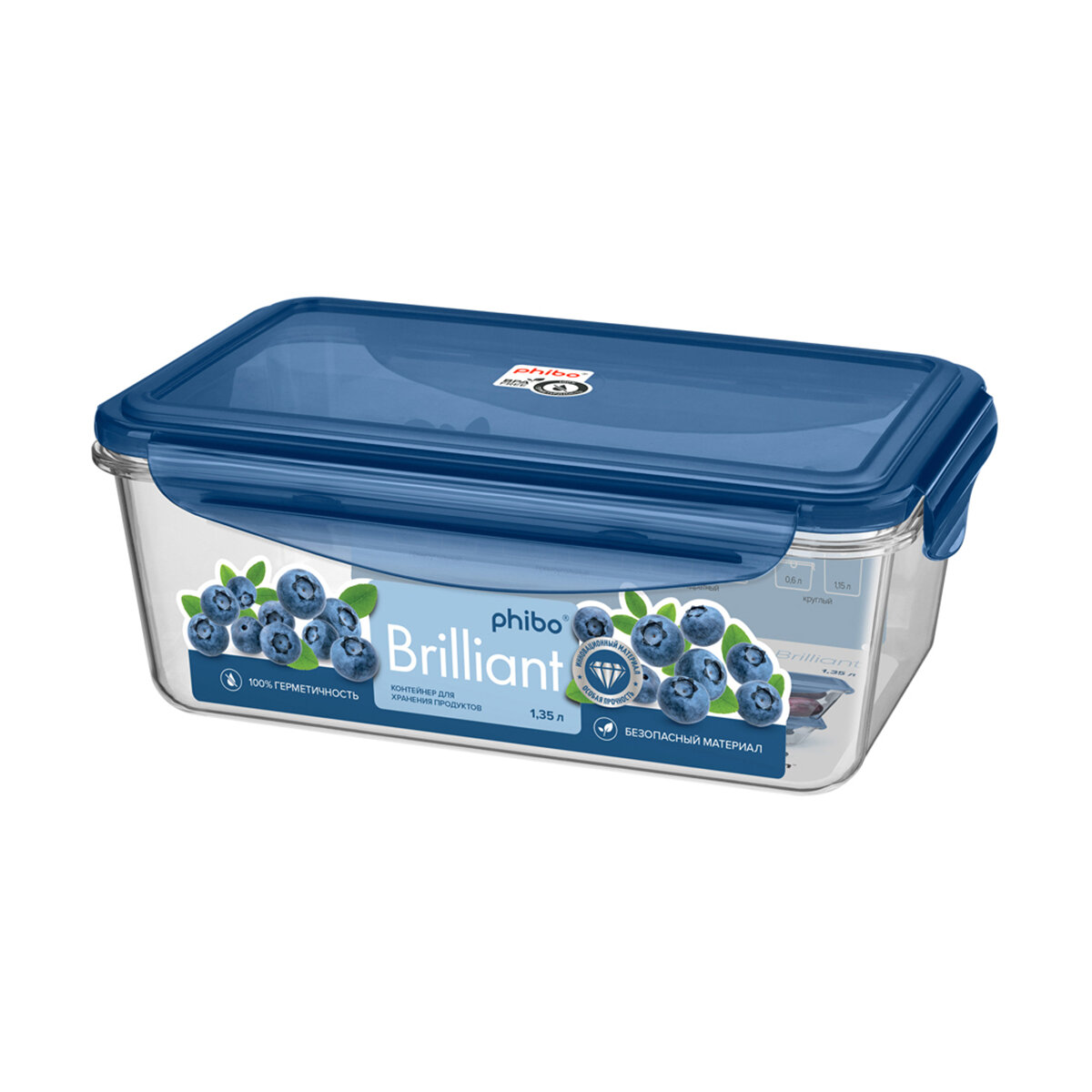 Контейнер Phibo Brilliant, прямоугольный, 1,35 л, синий информация: