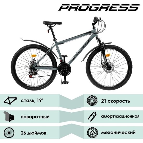 Горный велосипед PROGRESS 26" Advance Disc RUS, цвет серый, размер 19" информация: