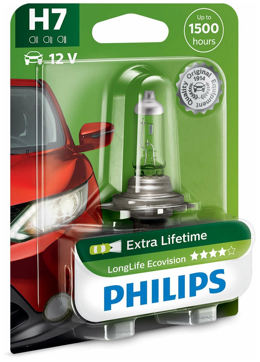 Лампа 12V H7 55W PHILIPS Longerlife Eco Vision 1 шт. блистер 12972LLECOB1