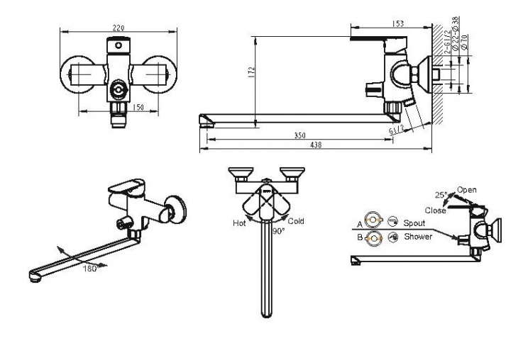 Смеситель для ванны длинный излив Bravat Louise F6191183CP-01L-RUS информация: