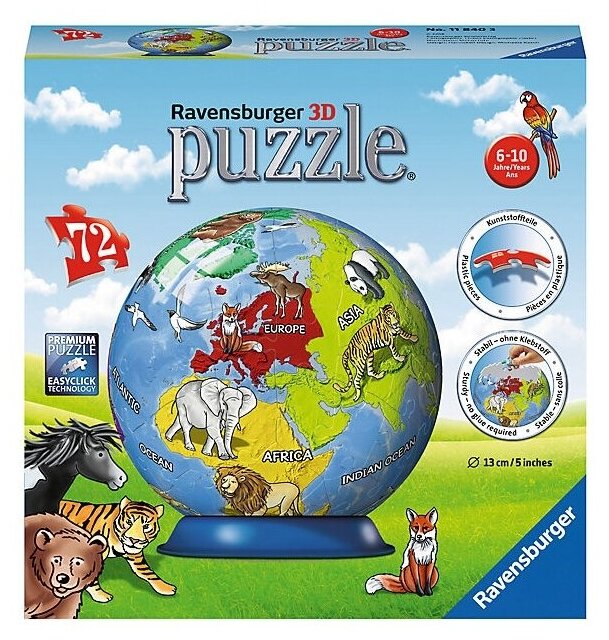 3D Пазл Ravensburger Земной шар, 72 детали, 11840 информация: