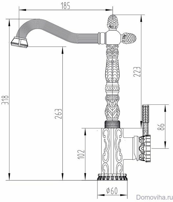 Смеситель для кухни ZorG серия Antic A 313K-BR, бронзовый, ретро, с орнаментом, одноручковый, поворотный