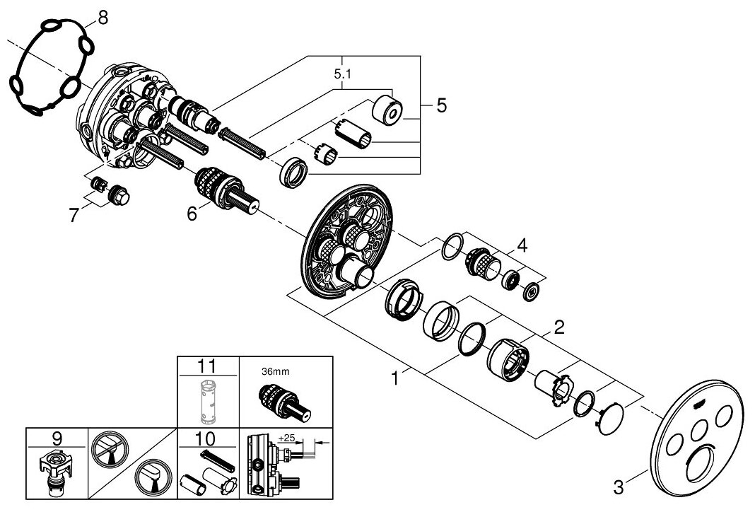 Смеситель для душа встраиваемый без подключения шланга GROHE SmartControl 29146000 информация: