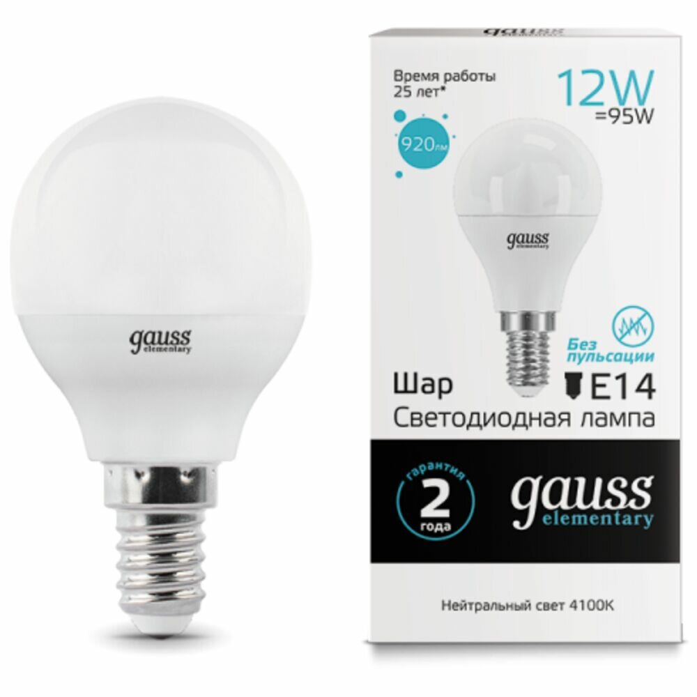 Светодиодная лампа Gauss LED Elementary Шар 12W 920lm E14 4100K (упаковка 10 шт.)