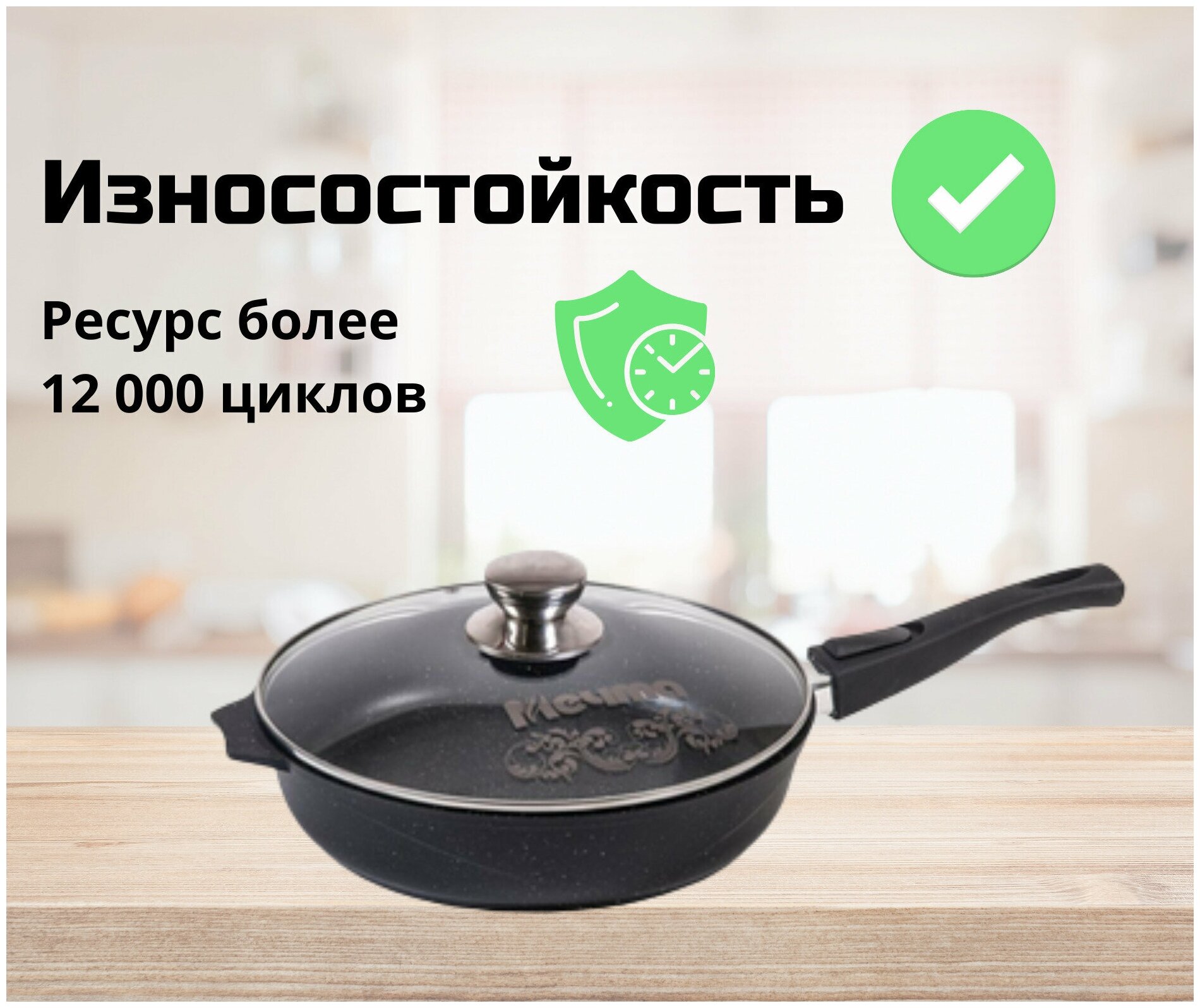 Сковорода 24см АП гранит black со съемной ручкой и стеклянной крышкой арт С024802 / Сковорода мечта / Сковорода для блинов / Сковорода мечта гранит информация: