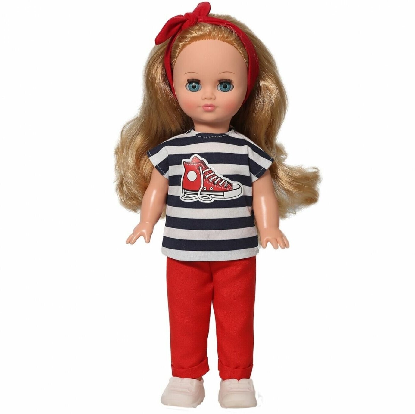 | Комплектация | Кукла в одежде (футболка в полоску с наклейкой "кеда" и брючки), ободок-бант в тон брюк, туфельки |