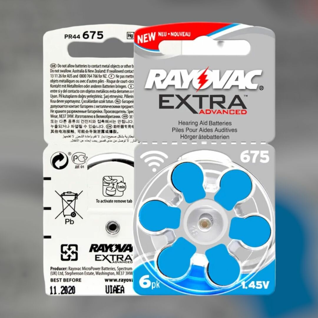 Батарейки Rayovac Extra 675 (PR44) для слуховых аппаратов, 5 блистеров (30 батареек)