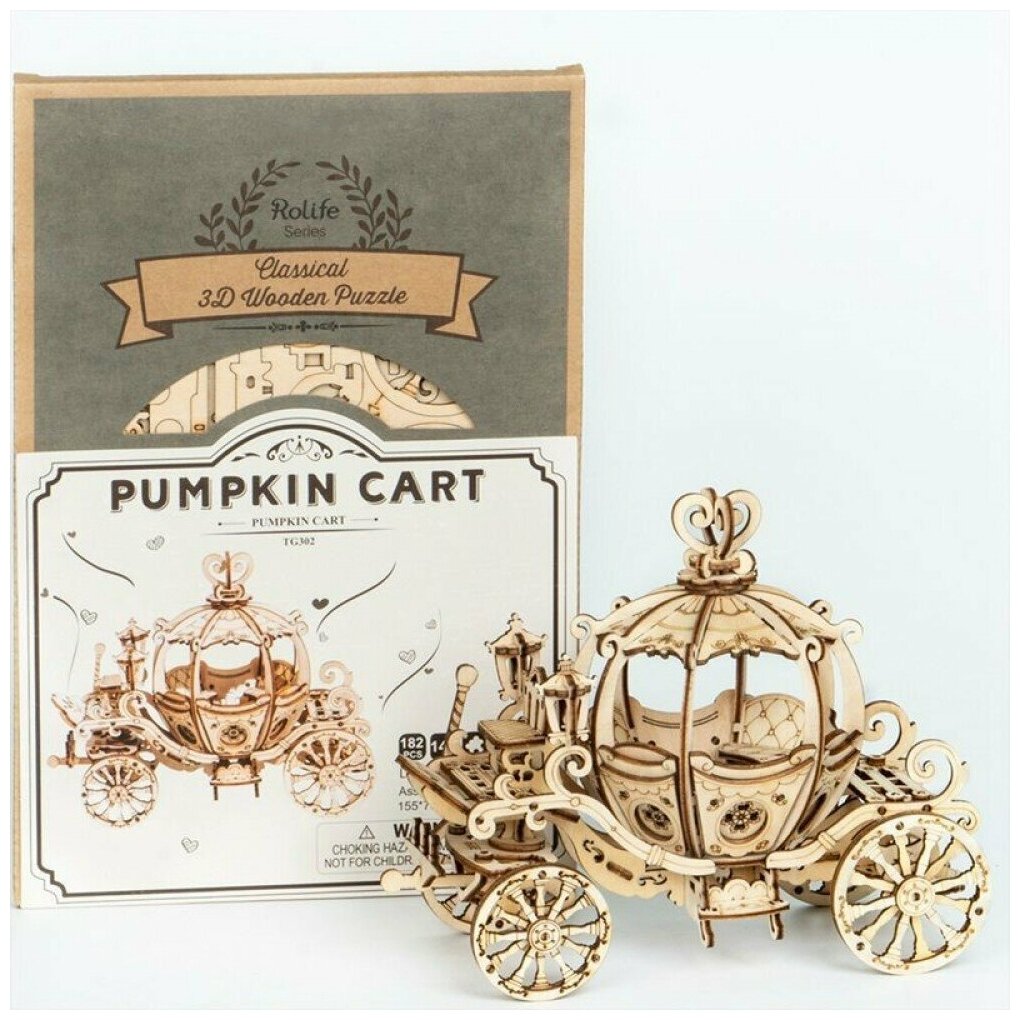 Деревянный конструктор Robotime Rolife - Тыквенная карета (Pumpkin car); 182 дет; 27,1*19,2*6,5 см; арт. TG302 информация: