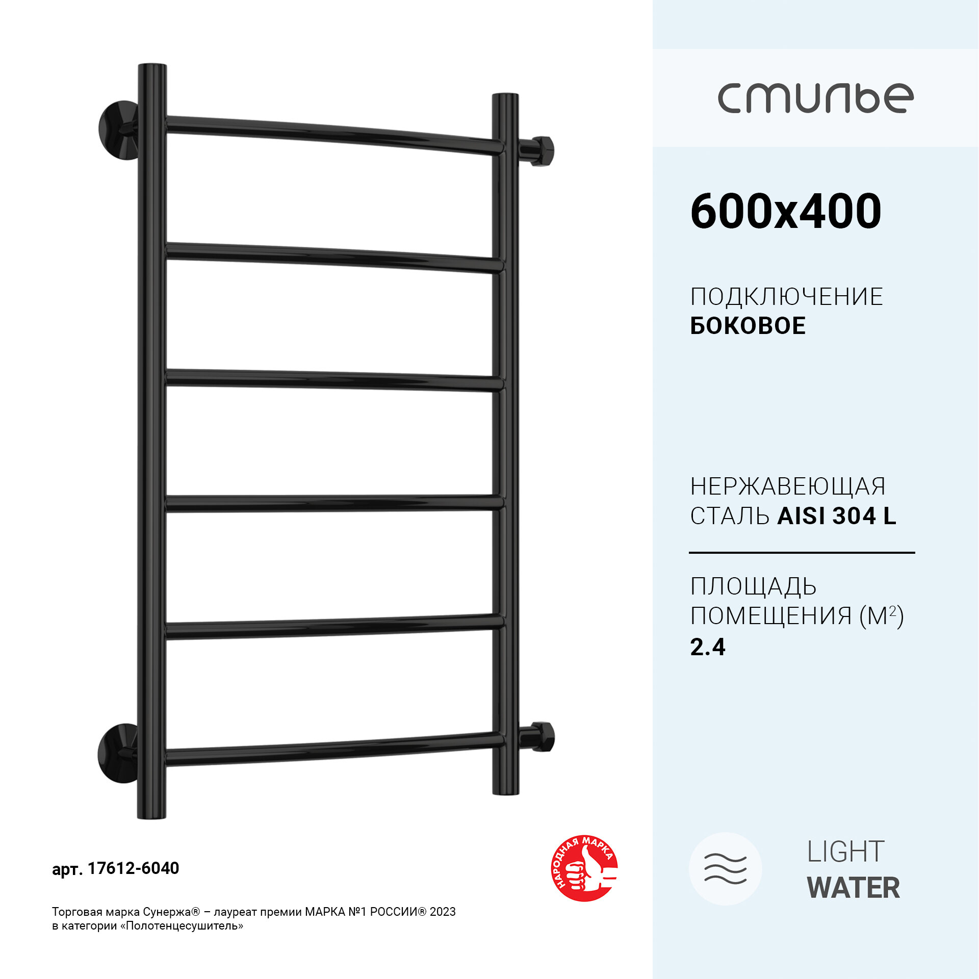 Полотенцесушитель водяной Стилье Версия-Б2 600х400 (6) Г 18 Чёрный информация: