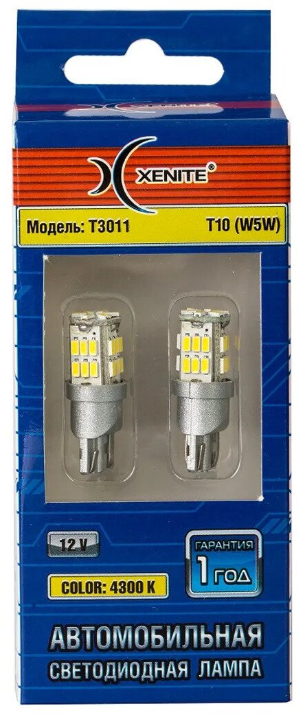 XENITE 1009570 к-кт ламп! светодиодных LED 12V Т10 W2.1x9.5d W5W T3011 210LM желто-белый 4300K (уп. 2 шт.)\