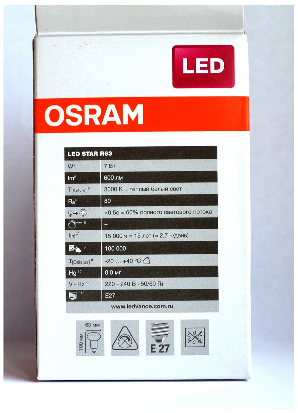 Отзывы на Лампочка светодиодная OSRAM Рефлектор Гриб R63 E27 7Вт 220В 600Лм 3000К Теплый белый, упаковка 10шт