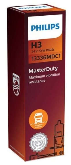 PHILIPS 13336MDC1 Лампа 24V H3 70W PK22s PHILIPS MasterDuty 1 шт. картон 13336MDC1