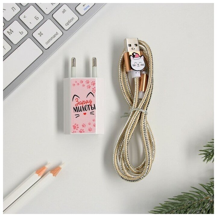 Отзывы на Набор кабель Micro USB + зарядное устройство, модель PB-02, "Заряд милоты",7,3 х 14,7 см