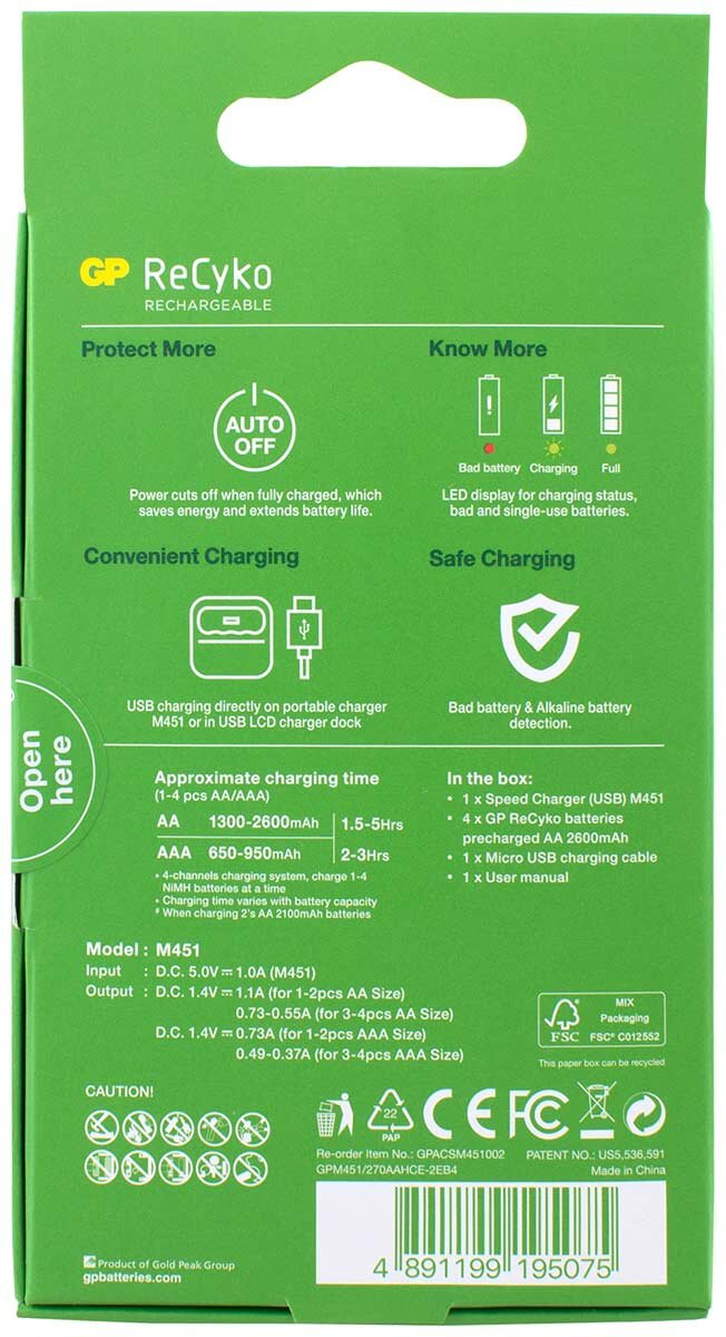 Комплект ЗУ + аккумуляторы Gp ReCyko Speed Charger M451
