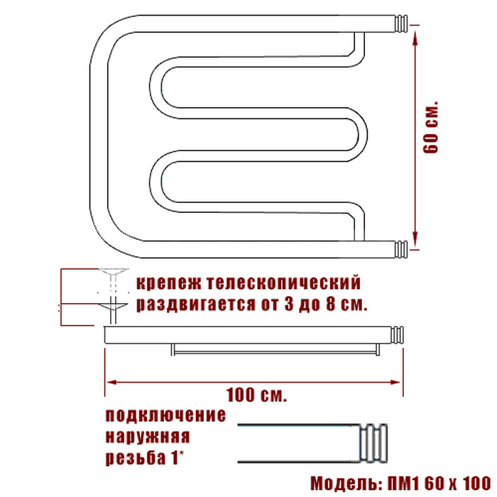 Полотенцесушитель Ника ECON ПМ 60/100 с полкой информация:
