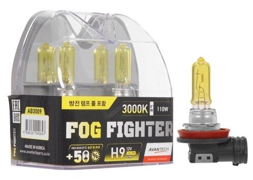 10 цен на Лампа Высокотемпературная Fog Fighter,H9 12v 65w (110w) 3000k Комплект 2 Шт. H9 12v 65w (110w) 3000k AVANTECH арт. AB3009