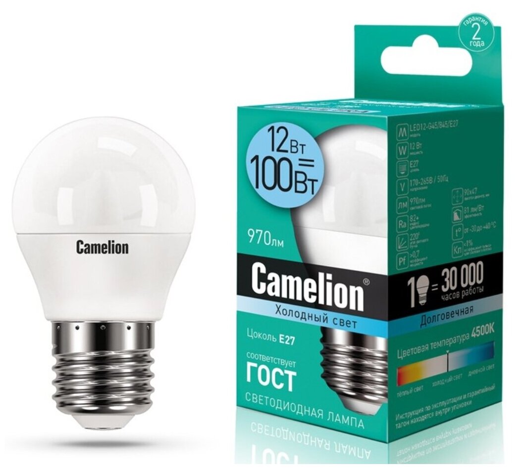 Camelion LED12-G45/845/E27 (Эл.лампа светодиодная 12Вт 220В) (1 шт.) информация: