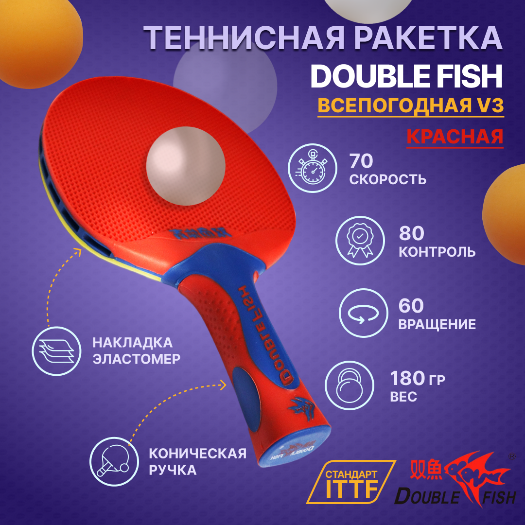 Всепогодная ракетка для настольного тенниса DOUBLE FISH V3 информация: