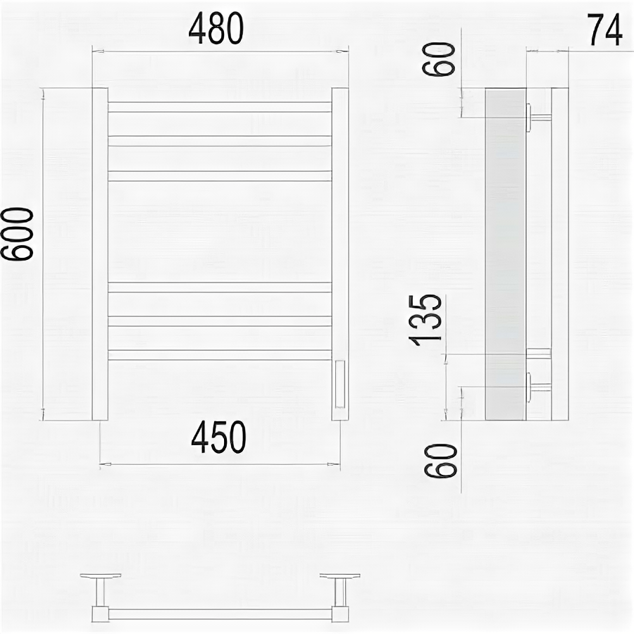 КС Ватикан quick touch (белый) электрический полотенцесушитель TERMINUS (480 мм / 600 мм / 450 мм)