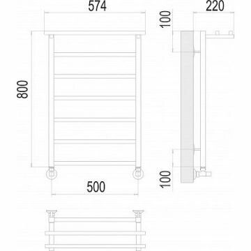 Полотенцесушитель Водяной узкий с полкой Di Kron, модель Premium-T 800х400 боковое подключение 50 см слева угловое
