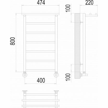 Полотенцесушитель Водяной узкий с полкой Di Kron, модель Premium-T 800х400 боковое подключение 50 см слева угловое