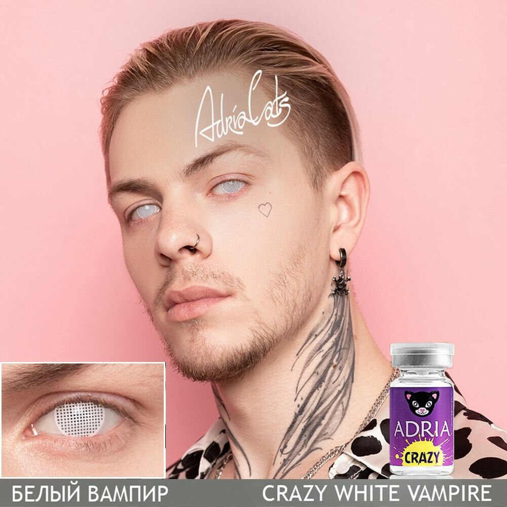Контактные линзы цветные ADRIA, Adria Crazy, Квартальные, WHITE VAMPIRE, -0,00 / 14 / 8,6 / 1 шт. информация: