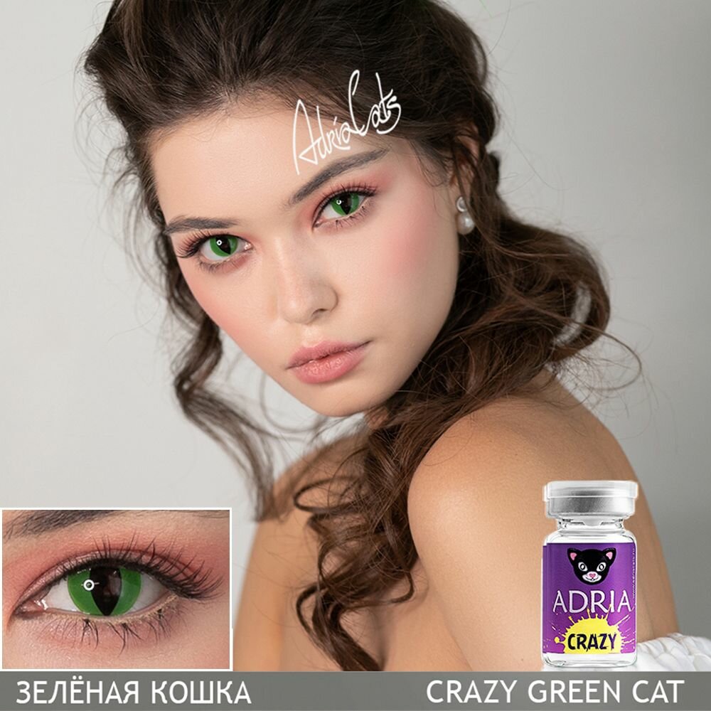 10 цен на Контактные линзы цветные ADRIA, Adria Crazy, Квартальные, GREEN CAT, -0,00 / 14 / 8,6 / 1 шт.