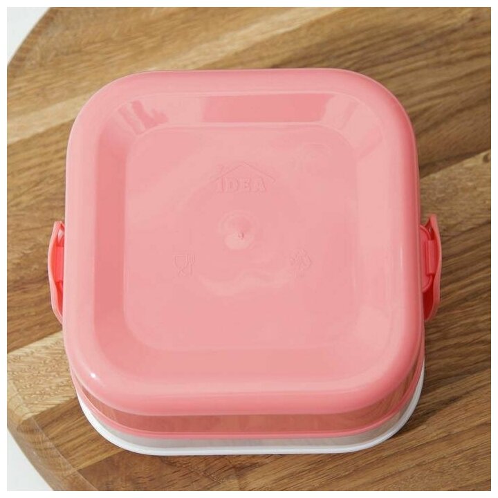 Ланч-бокс «Капкейки», 400+400 мл, 12,5×13×8,5 см, 2 отделения, пластик, бело-розовый