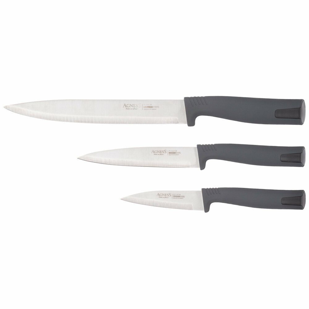 | Комплектация | Нож для нарезки 20см, Нож универсальный 12,5см, Нож для чистки овощей и фруктов, 9см, Пластиковая разделочная доска |