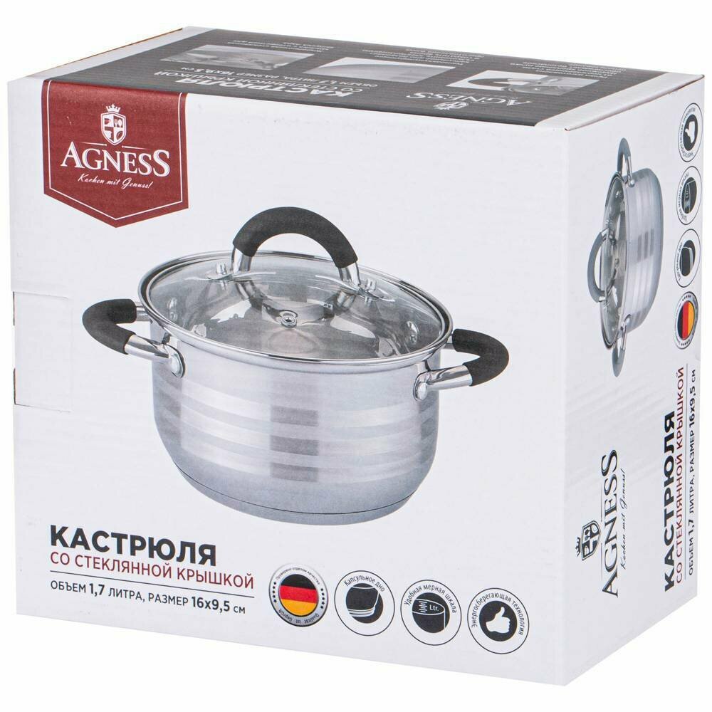 Кастрюля 937-420 agness со стеклянной крышкой серия classic 1,7 л 2 350 ₽