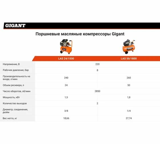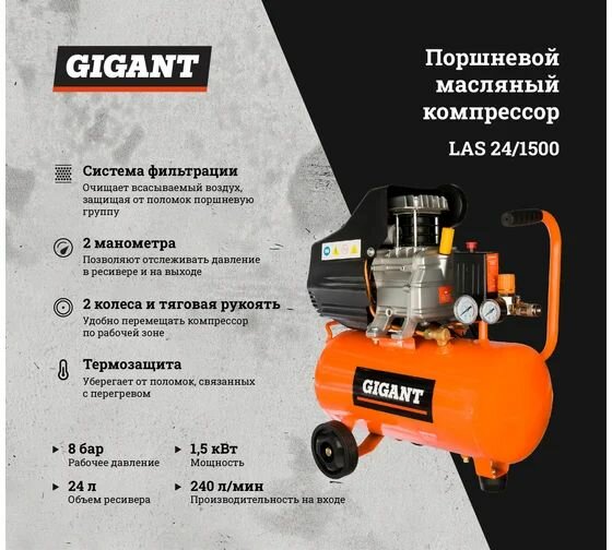 10 цен на Поршневой масляный компрессор Gigant LAS 24/1500