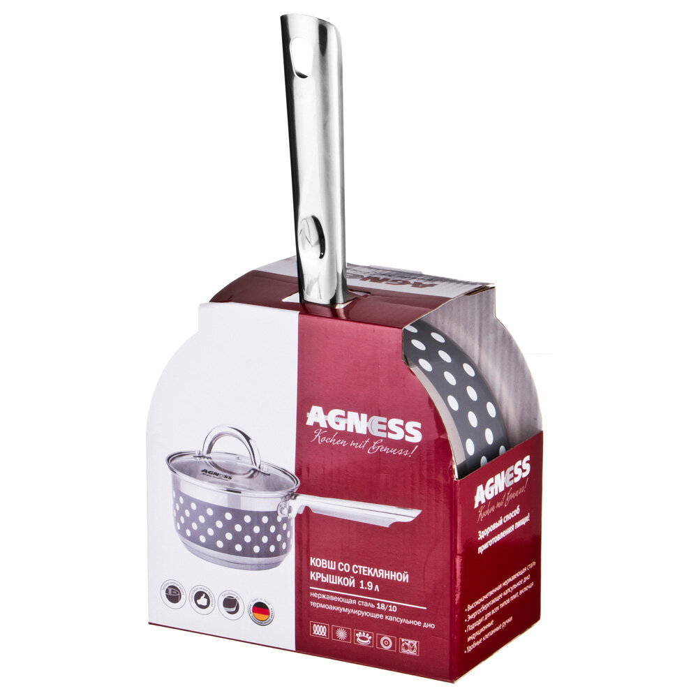 Ковш 937-716 со стекл крышкой Agness "Горошек" 1,9 л информация: