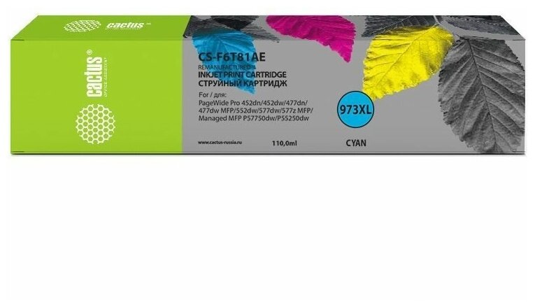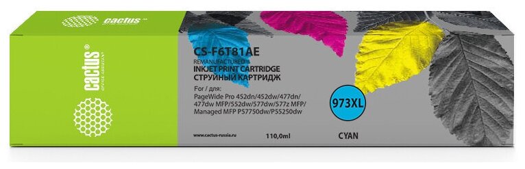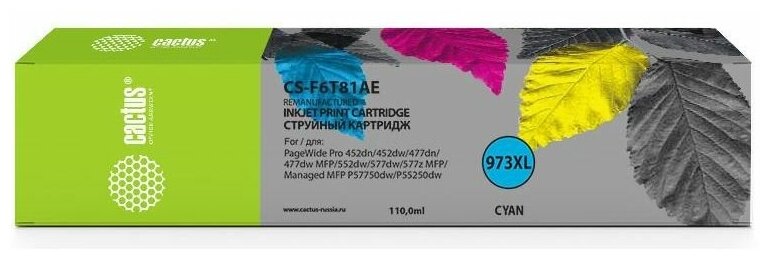 Cactus Расходные материалы F6T81AE Картридж 973XL для HP PageWide Pro 452dw Pro 477dw, голубой 110мл