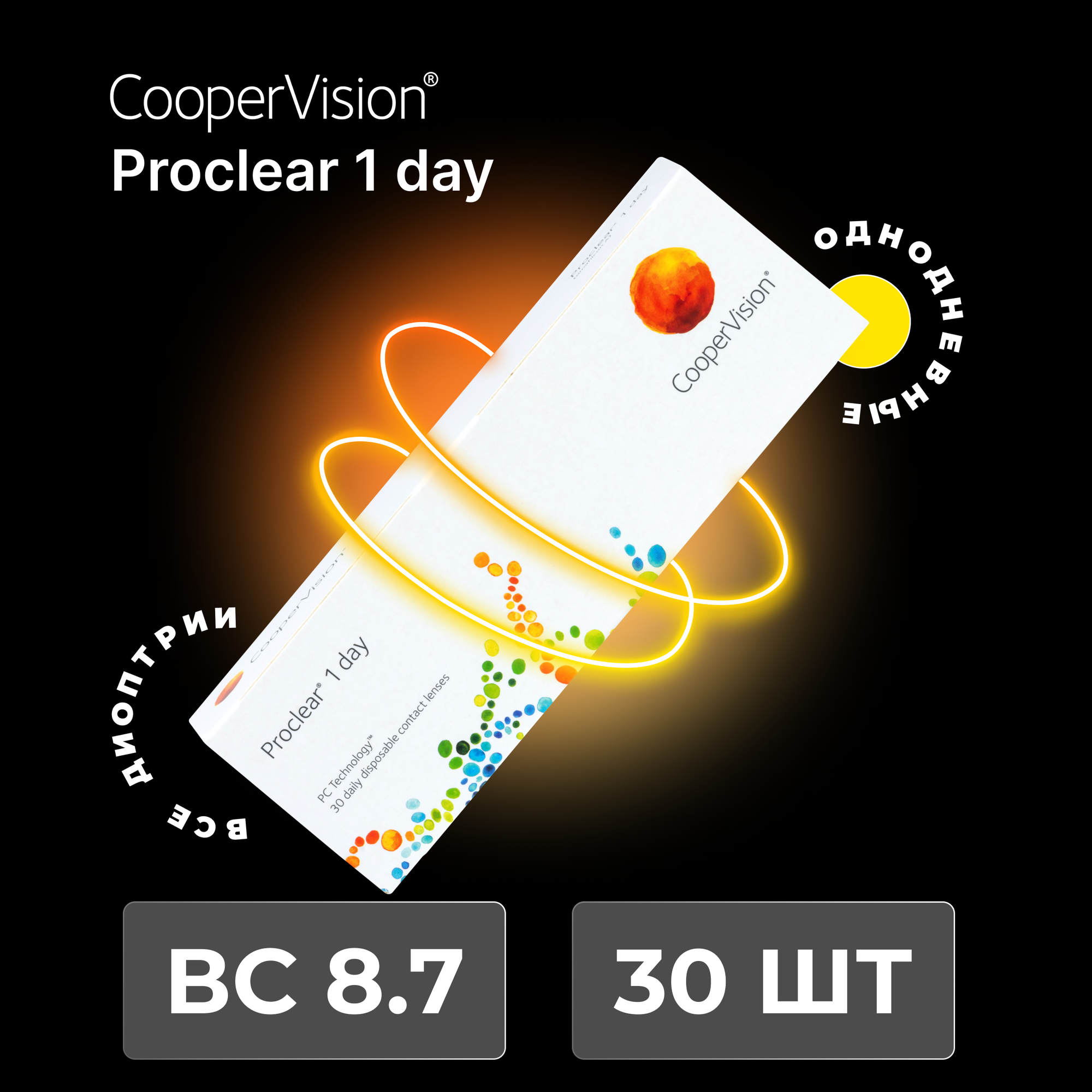 "Контактные линзы CooperVision Proclear 1 day (30 линз) +8.00 R 8.7, однодневные, прозрачные" 2 350 ₽