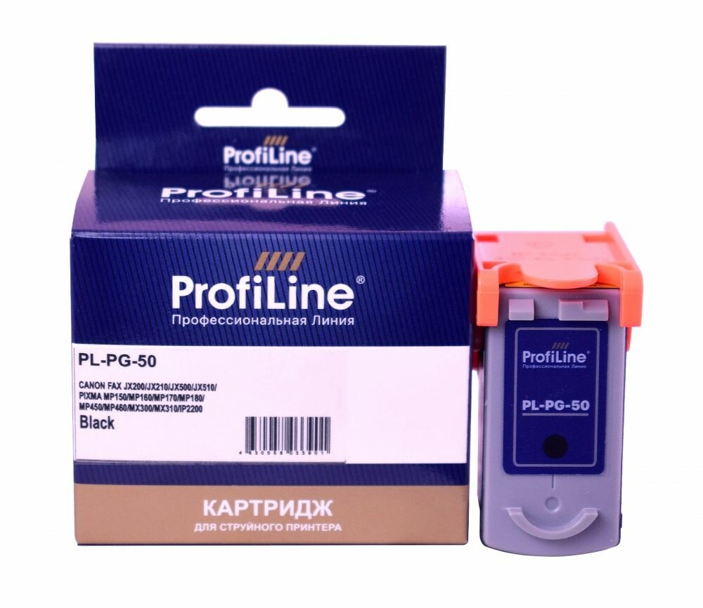 Струйный картридж PL-PG-50 для принтеров CANON FAX JX200/JX210/JX500/JX510/PIXMA MP150/MP160/MP170/MP180/MP450/MP460/MX300/MX310/IP2200 с чернилами Black ProfiLine информация: