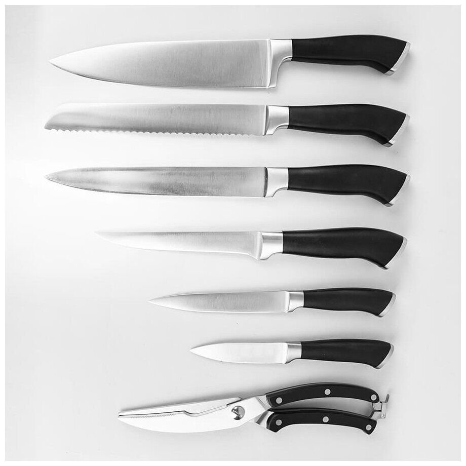 | Типы ножей в наборе | нож для овощей, нож для хлеба, разделочный нож, универсальный нож, шеф-нож |
